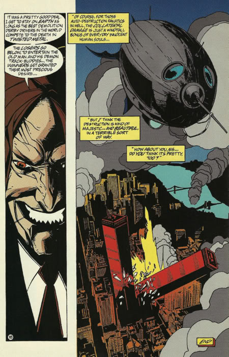 One of the many entries of Twisted Metal has shown an even deeper entrance to his psyche- such is the case of Twisted Metal: Head-on. This entry of Sweet Tooth’s vast interconnected storyline holds a story continuing after the circumstances of Twisted Metal, where Needles would reform himself in the conception of his true body- the ‘crazy bum’ of the previous game, Marcus Kane. Through this, Sweet Tooth breaks himself away from the bounds of Marcus’ mind that trapped him, releasing him into a new physical form where he can now hold dominance over his alternate self. Of course, that doesn’t mean he had to work with him in order to attain that kind of goal…