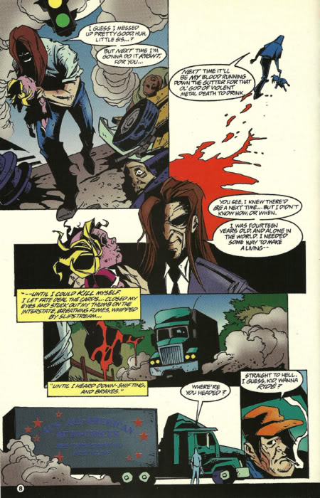 This isn’t the only medium of Needles’ insanity either- such as the events of Twisted Metal: Black. In this story, Needles would become a ruthless murderer locked away in an asylum alongside many other murderers who were invited into the Twisted Metal contest to be granted (again) their greatest desire. Needles’ greatest desire was to overcome the curse placed on him by a preacher at his failed execution which set an everlasting fire from the depths of Hell upon his head for the sins he caused- a pain that hurt him for three months straight. However, Needles over his time in the contest realized that there was no point in murder, an idea he would meed face-to-face when he finished the contest. Given a vial that would cure the pain- at the cost of giving up murder- Needles realized there was no point in accepting this, and would instead kill Calypso for the mockery he made. If anything, Needles wanted to be the greatest.